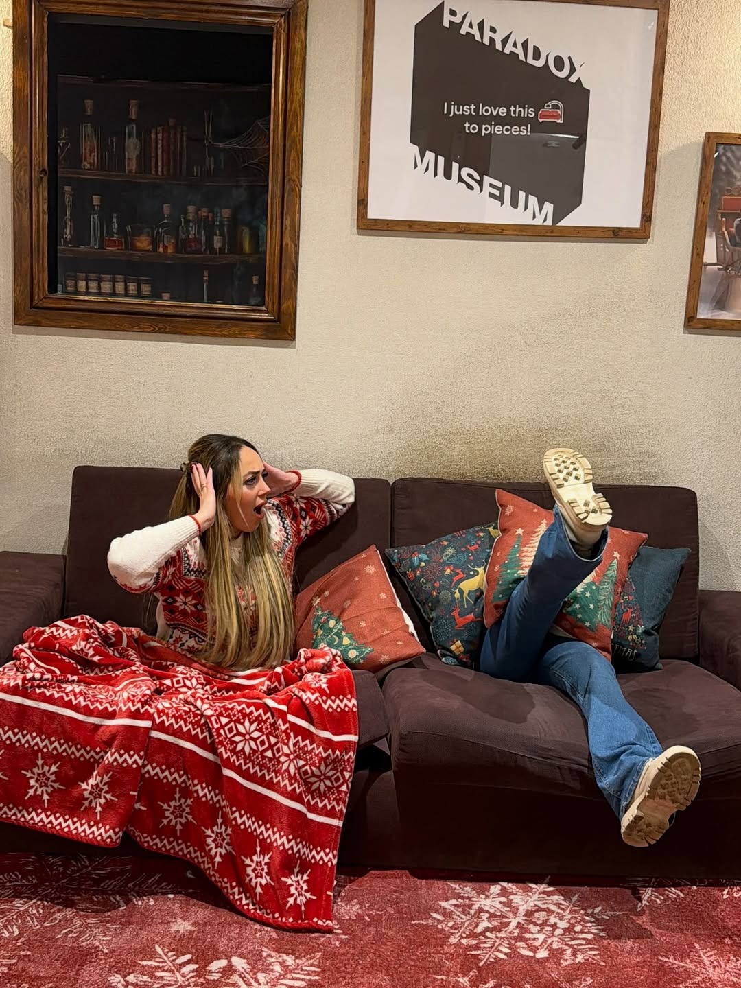 What works most effectively is how the experience uses simple, tactile illusions to invite participation rather than passive looking. In the Paradox Sofa exhibit, for example, one pose shows only fragmented pieces of your body; it’s silly and surprising, and you find yourself instinctively reshaping your body or camera angle to get the funniest shot possible. These playful breaks in reality make the visit feel like a collective game rather than a static tour.